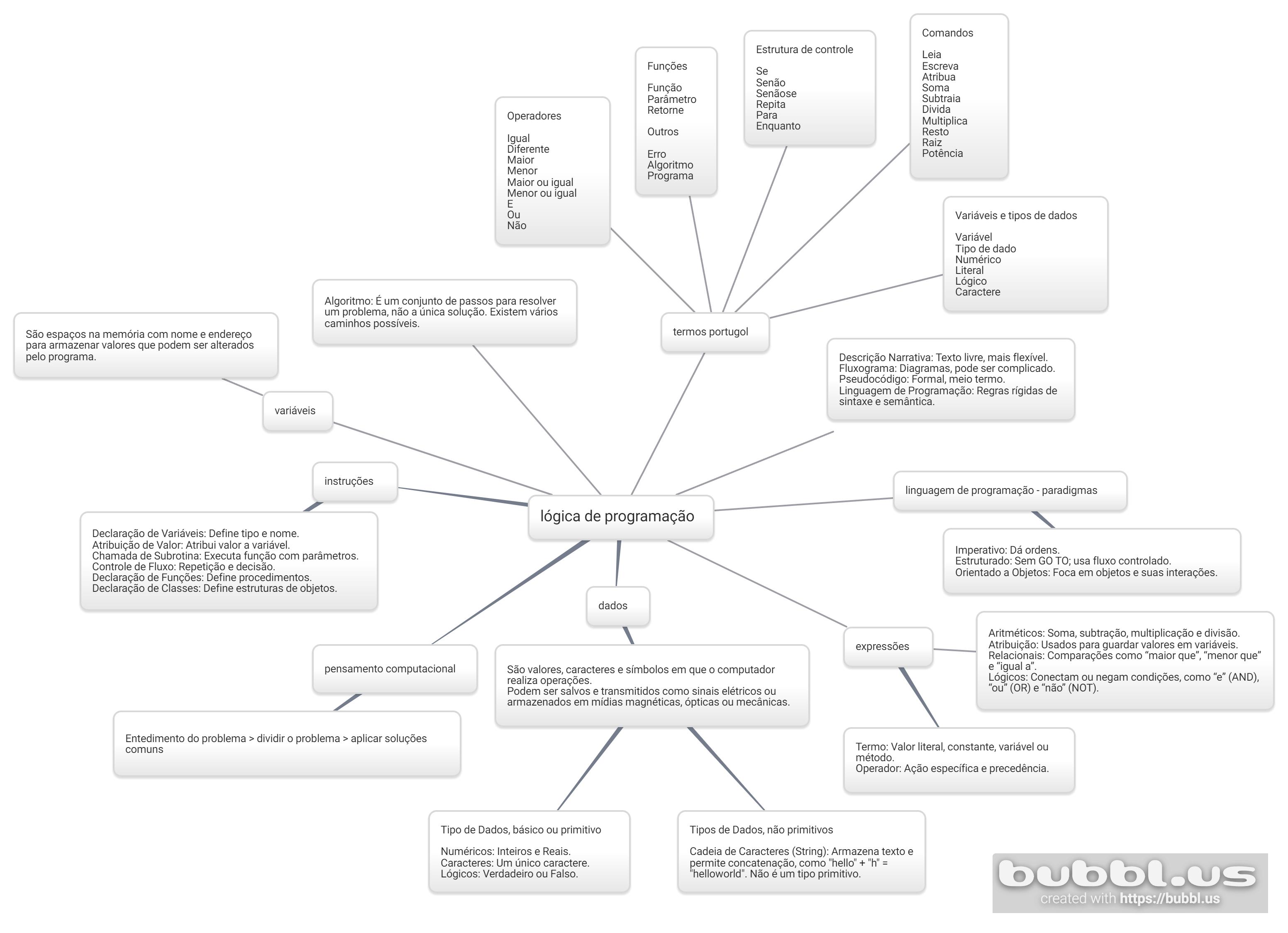 Após a realização do mapa, conceitos básicos da lógica de programação se tornaram mais fáceis de serem assimilados como um conceito básico, e não algo que deve ser constantemente relembrado